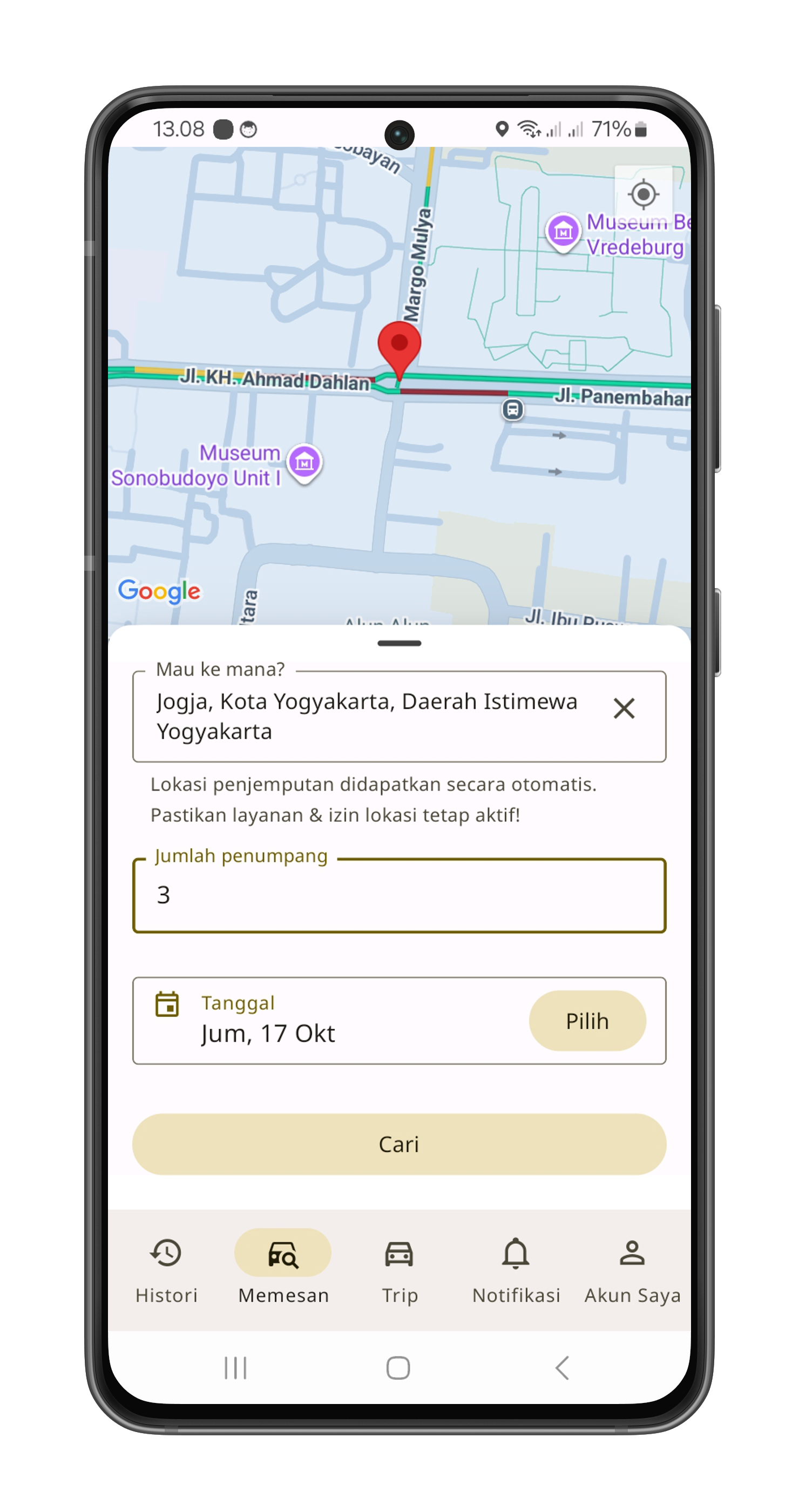 Antarmuka yang intuitif untuk driver, penumpang, dan agen.